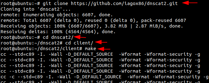 git clone https://github.com/iagox86/dnscat2.git cd dnscat2/ cd client/ make