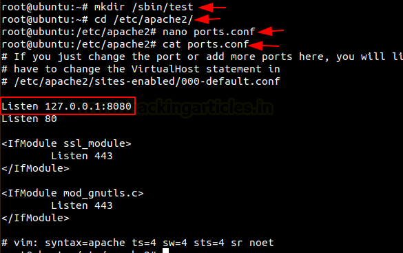 cd /etc/apache2 nano ports.conf cat ports.conf