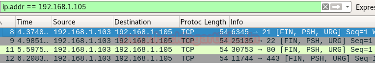 If you notice given below image here source port sends FIN, PUSH and URG packets to the destination and destination port didn’t send any reply to source port which indicates above specified port are open and if any destination port sends RST, ACK packet to source port then it indicated that particular port is closed.