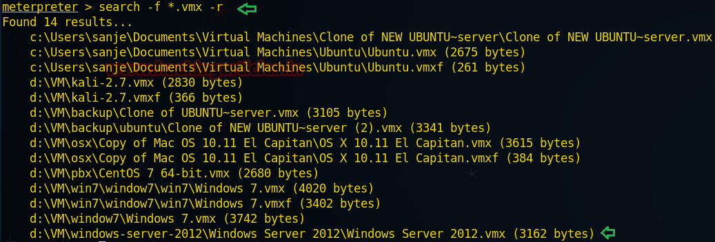 meterpreter > search –f *.vmx –r