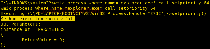 We can change the priority of any process running on the victim’s system with the help of process alias of wmic command.