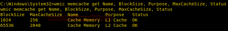 wmic memcache get Name, BlockSize, Purpose, MaxCacheSize, Status