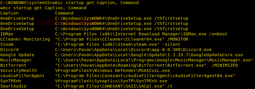 We can enumerate startup services using startup alias for all the services that run during the windows startup.