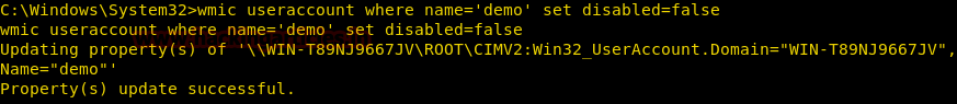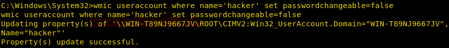wmic useraccount where name='hacker' set passwordchangeable=false