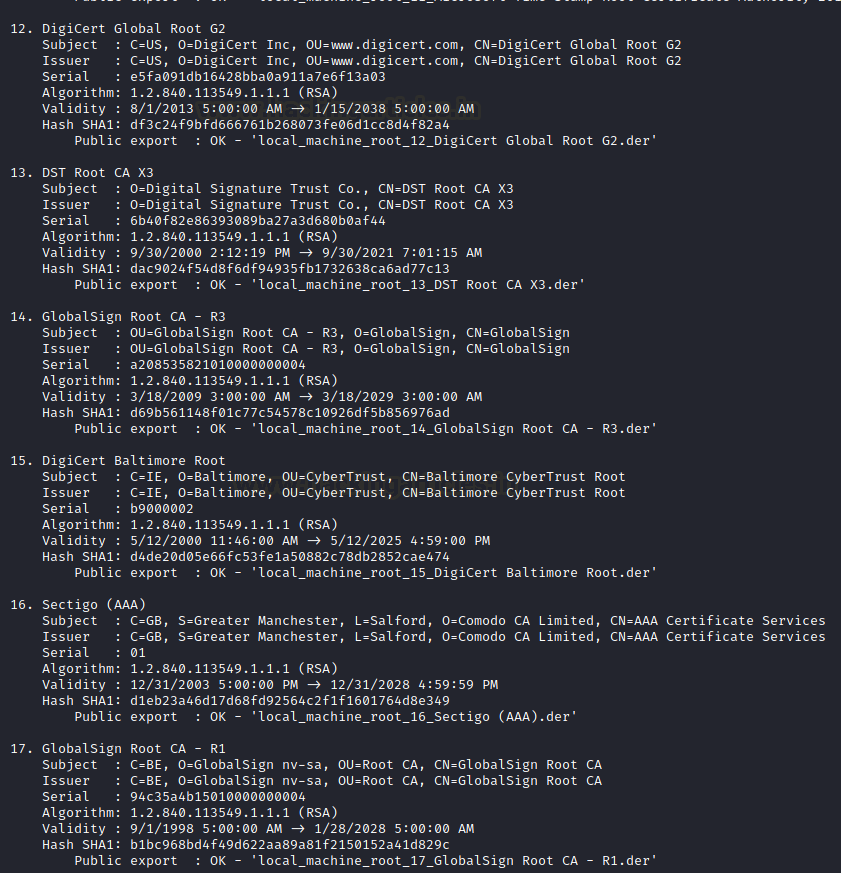 The list goes on as on a rough estimate any system that is under use might contain a short of 400 certificates and this number increases based on the user activity on the system. The details extracted by Mimikatz is of subsequent value.