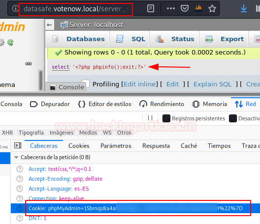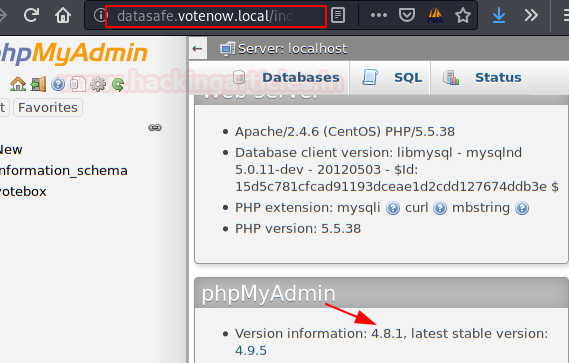 The next step will be to list the version of “phpMyAdmin” and find some exploit that can serve to gain access to the interior of the machine.