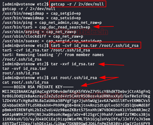 We list the available capabilities, we see that we have “+EP” to the tarS binary. This binary allows us to compress any file on the system without being root. Therefore, once we have it compressed, we will only have to decompress it to be able to read the content of the file.