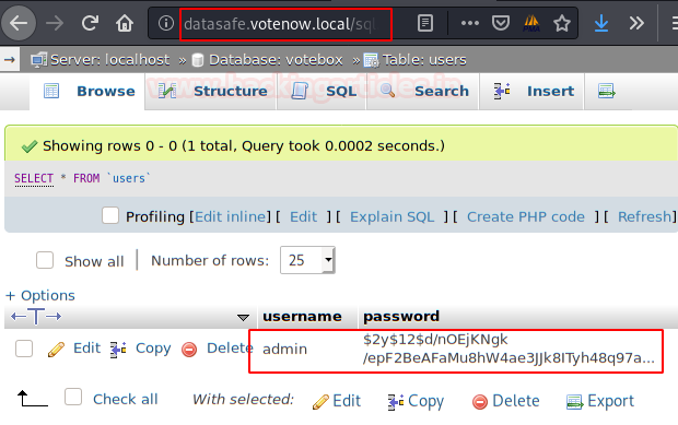 We access the address of the subdomain, find an access panel to “phpMyAdmin“, insert the credentials obtained in the previous file and find the password of the user “admin“. It is likely that the user will reuse the same credential for other corporate services.