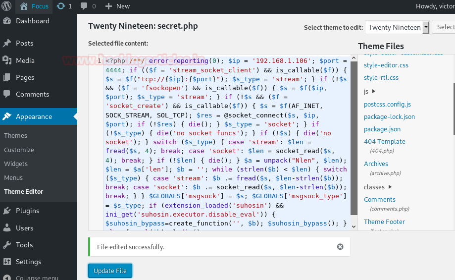 http://192.168.1.101/wordpress/wp-content/themes/twentynineteen/secret.php