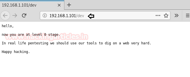 Then we go to the web directory listing and use the starting directory brute force with the help of dirb. Hmmmm!! Shows two interesting directories, /dev & /WordPress, which means that the host uses the WordPress application.