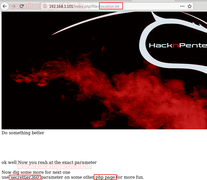 2. The “secrettier360” is found, but how did you figure out that it should be called with “images.php”, not the “index.php” or something else. I mean this call: “http://192.168.1.101/image.php?secrettier360=/etc/passwd”