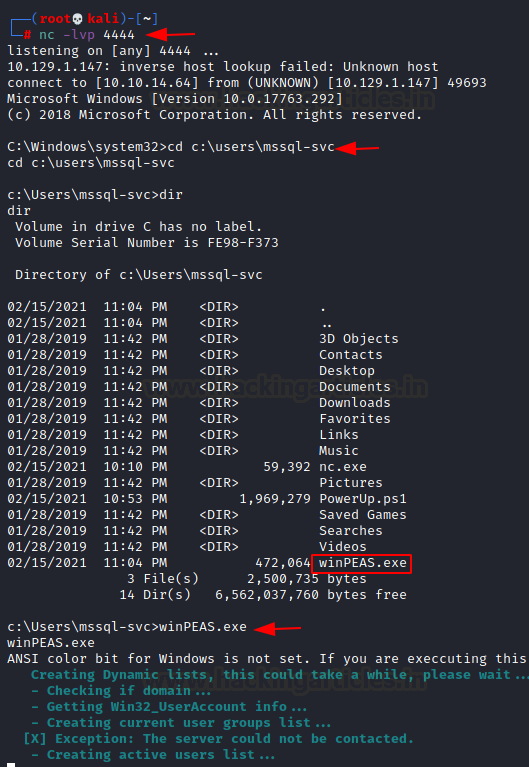 As we are on the point of downloading the nc.exe why don’t we take this time to download WinPEAS as well