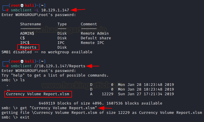 smbclient -L 10.129.1.147 smbclient //10.129.1.147/Reports