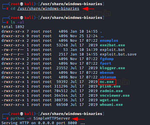 cd /usr/share/windows-binaries python -m SimpleHTTPServer