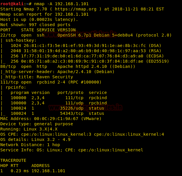Using nmap on the victim machine we got three ports open 22,80 and 111