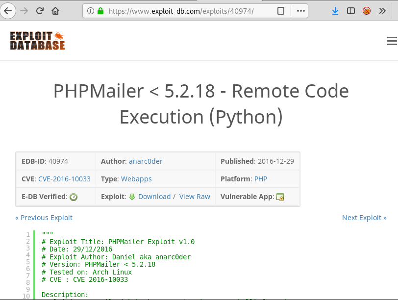 There was yet another file worth noting called VERSION. On opening it we found the version of something. It was unclear which software had version 5.2.6 but look at the previous screen again… A file exists called: PHPMailerAutoload.php. It is fairly certain now that version 5.2.6 was of PHPMailer. So, on a bit of internet surfing, we found an RCE exploit for the version!