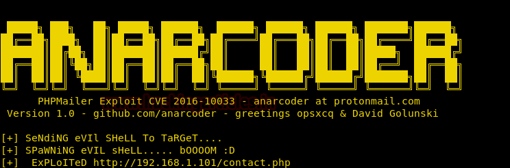 - Set the target of vulnerability to 192.168.1.101/contact.php where this vulnerability exists (read PHPMailer’s function).