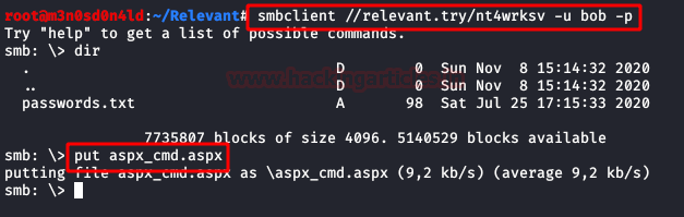 We upload a “aspx_cmd.aspx“, this is a webshell for execute commands from browser.