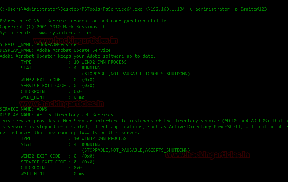 PsService64.exe \\192.168.1.104 -u administrator -p Ignite@123