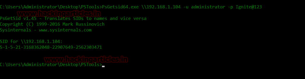 PSGetsidc64.exe \\192.168.1.104 -u administrator -p Ignite@123