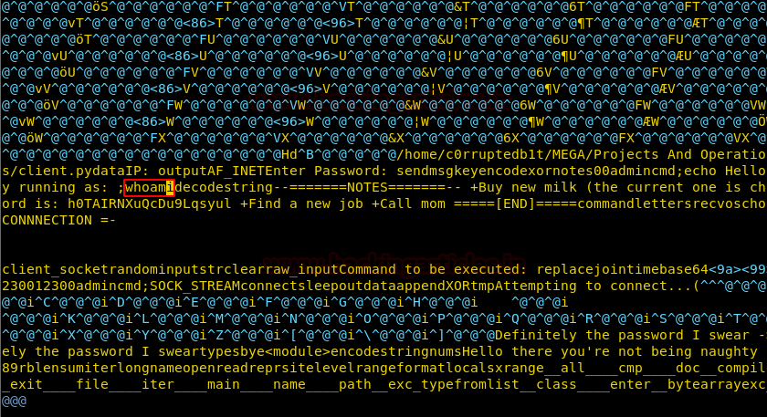 When we run the application “client.bin”, it asks for an IP address and a password.