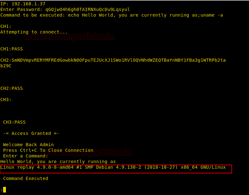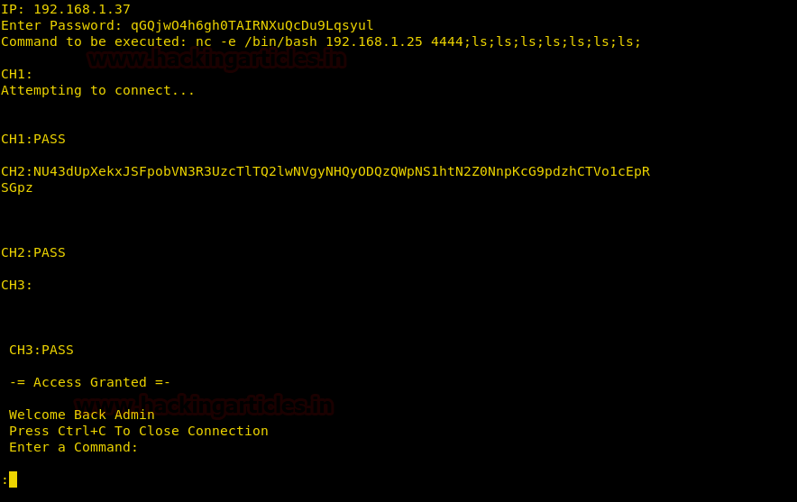 We joined the string and use it as a password for the application. After giving the password, we successfully able to login, and find that we can run commands. But when we type a command we get an error stating that we are sending unauthorized packets and the connection gets closed.