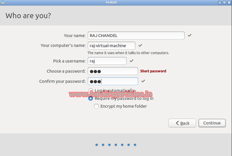 You will see the form, please fill all the fields like Name, Password etc and then click Continue