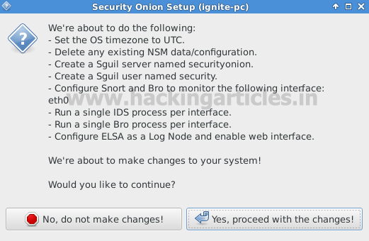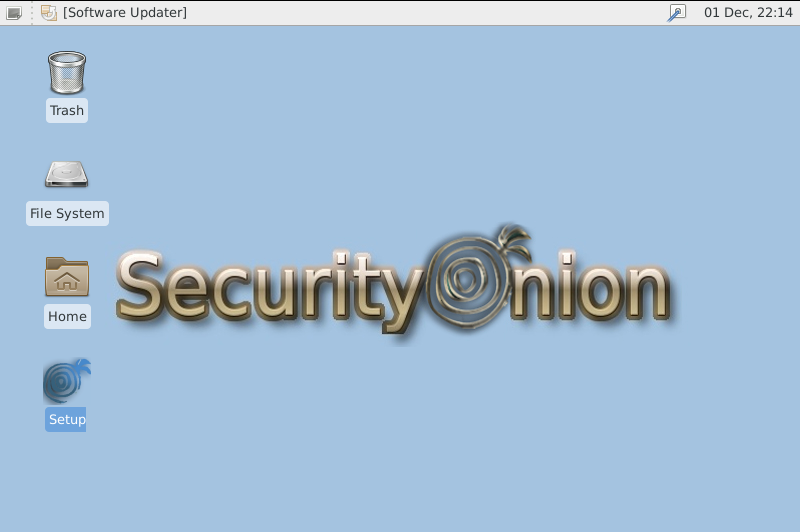 Click on “setup” icon present at the desktop to configure security onion on your system.