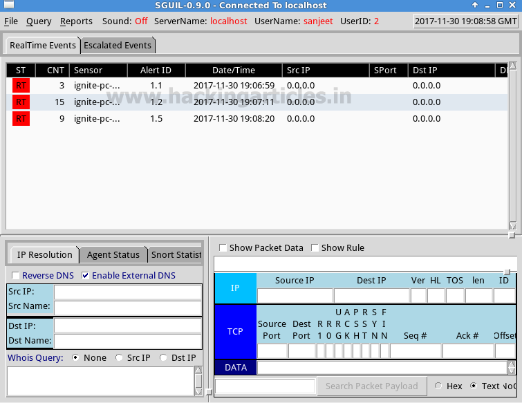 Security Onion configuration is now completed. You will see it will launch icon for SGUIL, Squert, and ELSA. Now click on the squil icon and then enter the username and password to login into sguil.