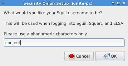 Now add a username for Sguil, Squert, and ELSA a shown in given below image.