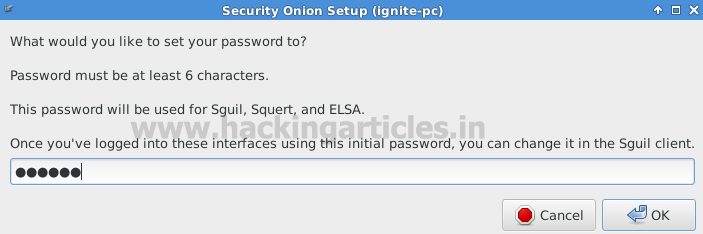 Enter the password for username used while you want to login into Sguil, Squert and ELSA a shown in given below image.