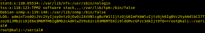 Well, the base64 cookie value worked but nothing much helpful, so we started to look for something else. We checked the log.class.php, we found that the Log class is having an include function to include a log file but the parameter type_log is not assigned any value. We assigned the variable with the path of passwd file as the value.