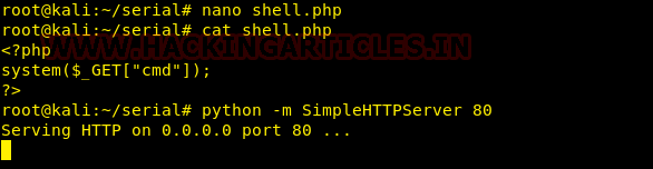 Now that we have verified the presence of file inclusion vulnerability, we created a remote code execution file and started the python server.