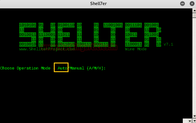 When you open Shellter in Kali in wine mode, it prompts you to choose operation mode.