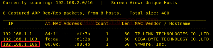We start by scanning the network for targets using Netdiscover.
