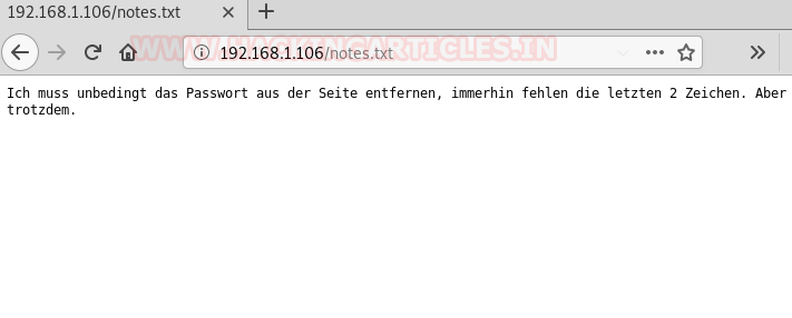 So, we found a text message that is written in German when we explored the notes.txt file.
