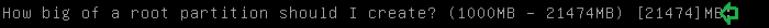 You can enter any size from 1000MB to 21474MB. But it is recommended to keep it maximum i.e. 21474MB.