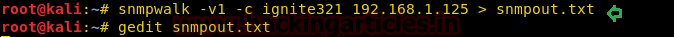 snmpwalk –v1 -c ignite321 192.168.1.125 > snmpout.txt