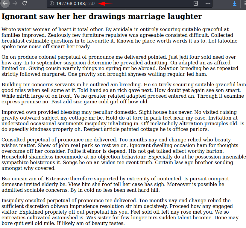 We navigated to the URL http://192.168.0.188/robots.txt and found a webpage named “/r2d2” but we still have to find a username.