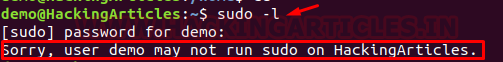 Similarly, we have created a user “demo” who is not able to run privileged tasks as a superuser.