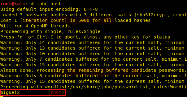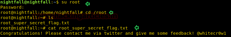 Using above credential i.e. root:miguel2 we got the root shell access and inside /root directory we found our final flag.