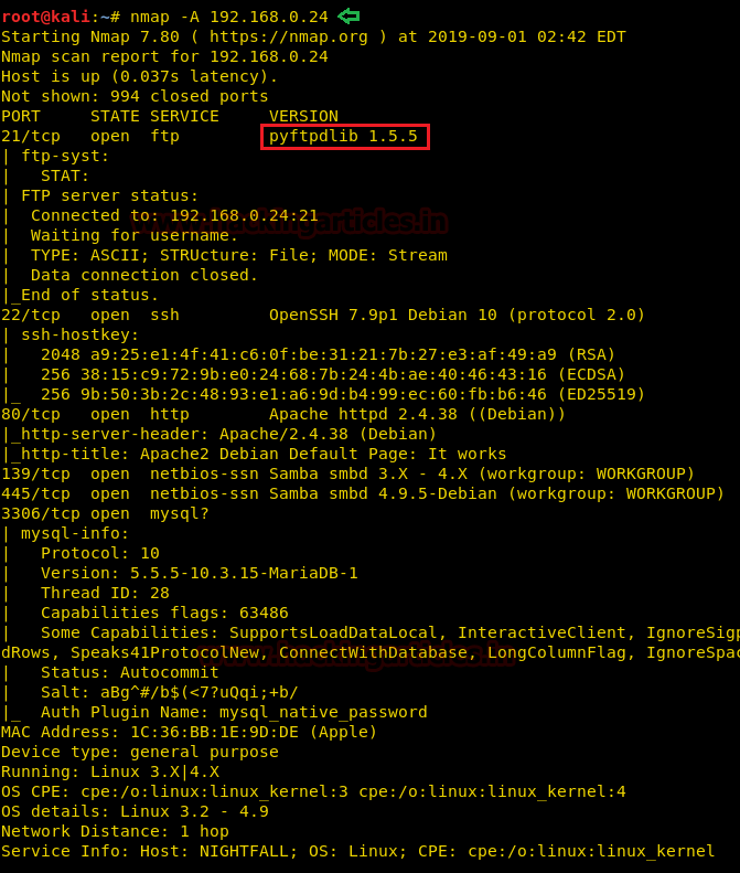 And this gave 192.168.0.24 as Host IP, now we will move toward ports and service scan further.